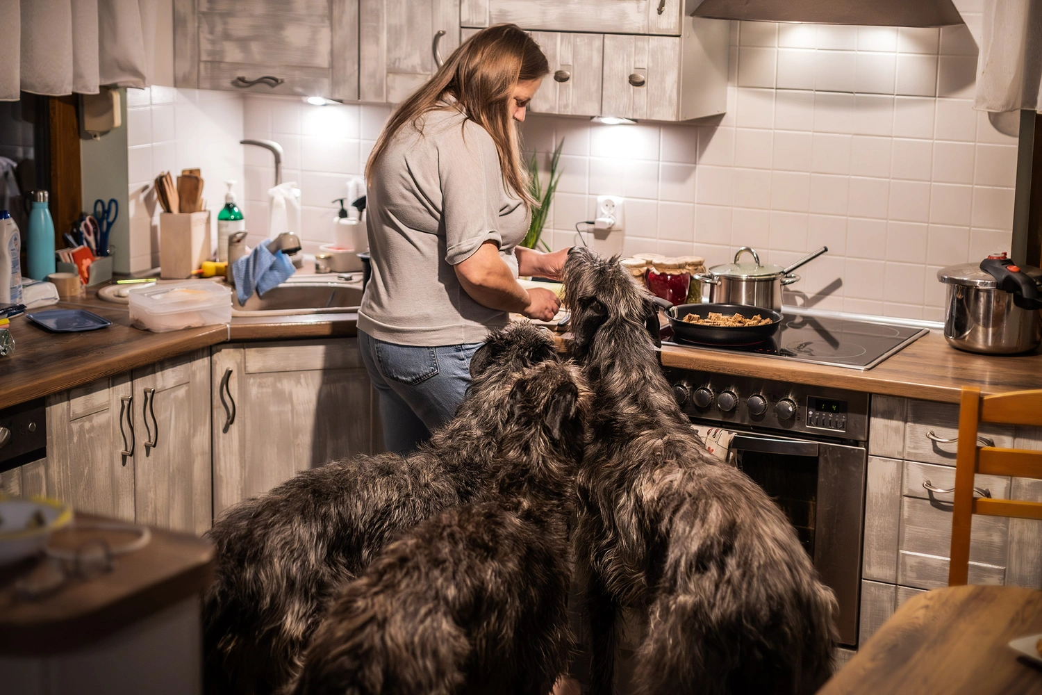 Wielokrotnie spotykam się z pytaniem: jak się żyje z takim psem? A zaraz potem ze stwierdzeniem: pewnie dużo jest przy nim pracy? Cóż, każdy pies to obowiązek - każdy potrzebuje zaspokojenia swoich potrzeb, od podstawowych, fizjologicznych, po emocjonalne i społeczne. Dla mnie deerhound to obowiązek, który kocham i który daje mi mnóstwo radości.