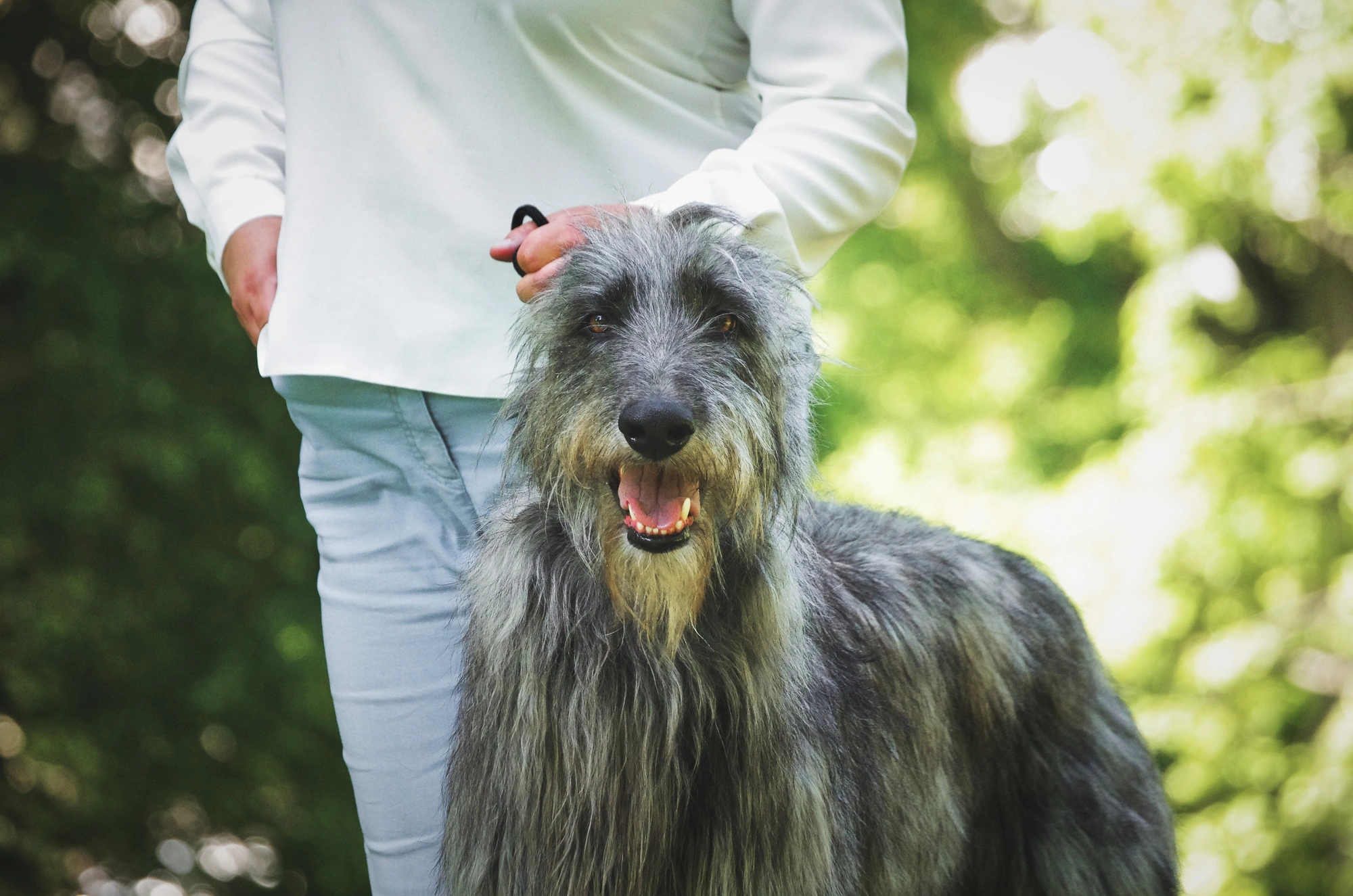 Elton to moje spełnienie marzeń o drugim deerhoundzie. Kupiony z myślą o towarzystwie spacerowym dla Arii, natomiast w jego przypadku wiedziałam od początku, że będę go wystawiać. Nie wykluczałam też hodowania w przyszłości, stąd Elton został kupiony w niemieckiej hodowli, której linie nie są spokrewnione z liniami Arii.
